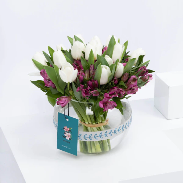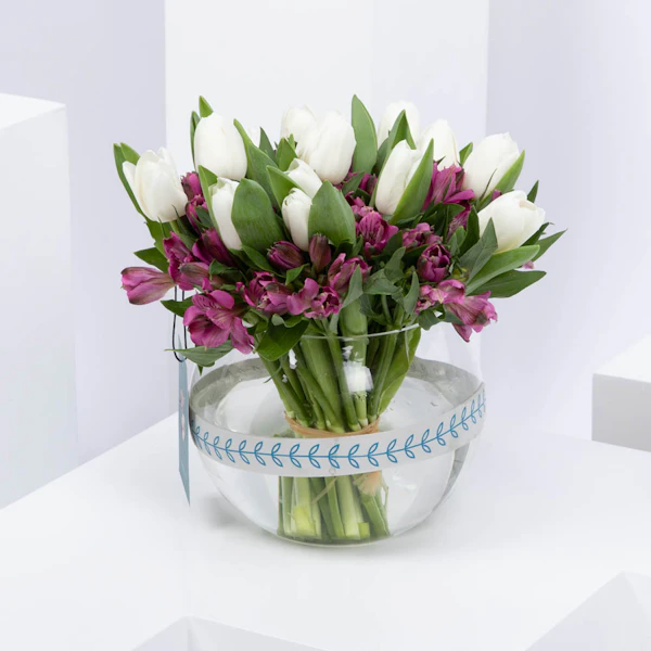 باقة من زهور الالستمريا والتوليب