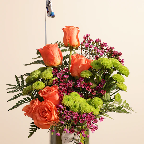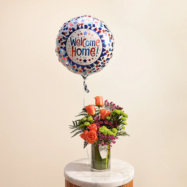 اجعل لحظة عودة من تحب إلى المنزل أكثر إشراقًا مع فازة من الزهور المفضلة لديهم، مرتبة بشكل رائع لتضفي لمسة من الجمال والحيوية على أي مكان. لتكتمل الأجواء الاحتفالية، تأتي الفازة مزينة ببالون "نورت البيت" فقط أو وسط مجموعة من البالونات المبهجة التي تضيف لمسة من السعادة والبهجة. سواء كنت تحتفل بمناسبة خاصة أو بعودة من تحب إلى المنزل، فإن هذه الفازة مع البالونات تجعل كل لحظة أكثر تميزًا وجمالًا. اختار الآن واجعل كل مناسبة لا تُنسى مع هذه الهدية الرائعة التي تجمع بين الأناقة والاحتفال.