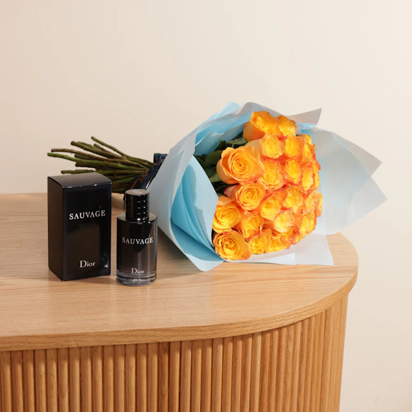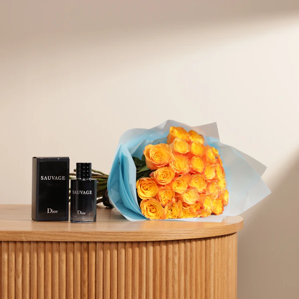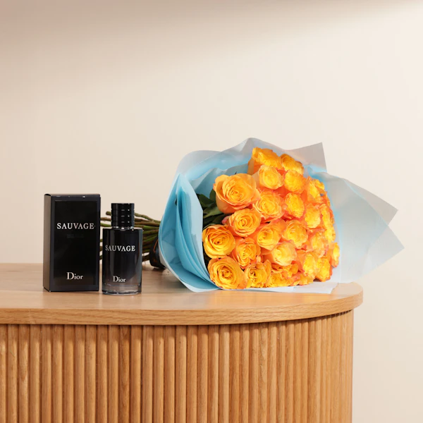 استمتع بإسعاد من تحب مع عطر فاخر من باقة من أروع وأفخم عطور ديور، لتختار من بينهم بعناية ما يناسب ذوقهم. يأتي هذا العطر الرائع مع باقة من ورود الجوري البرتقالية النابضة بالحياة، في غلاف أزرق فاتح رقيق. ينبعث من هذه الهدية رائحة الأناقة والفخامة، مما يجعلها الهدية المثالية للتعبير عن حبك وتقديرك.