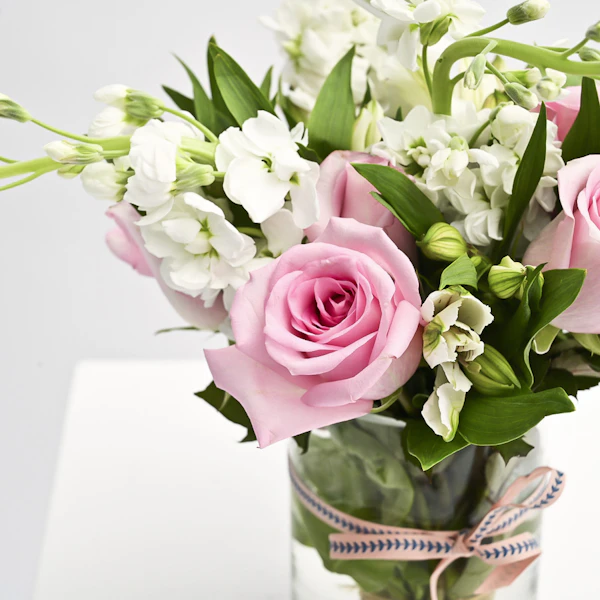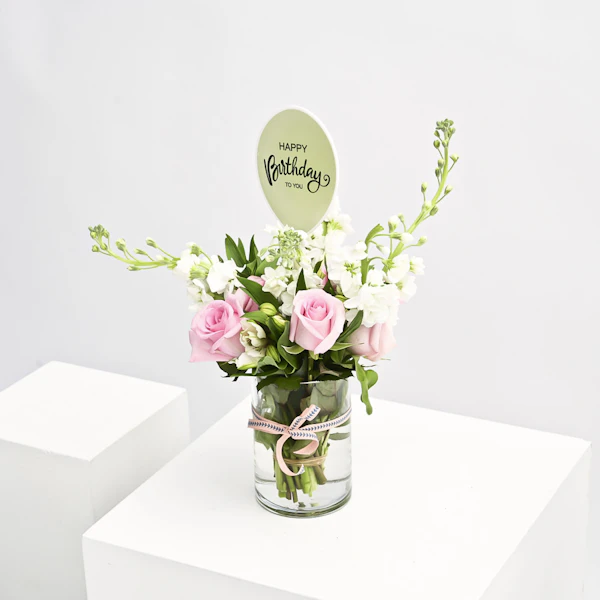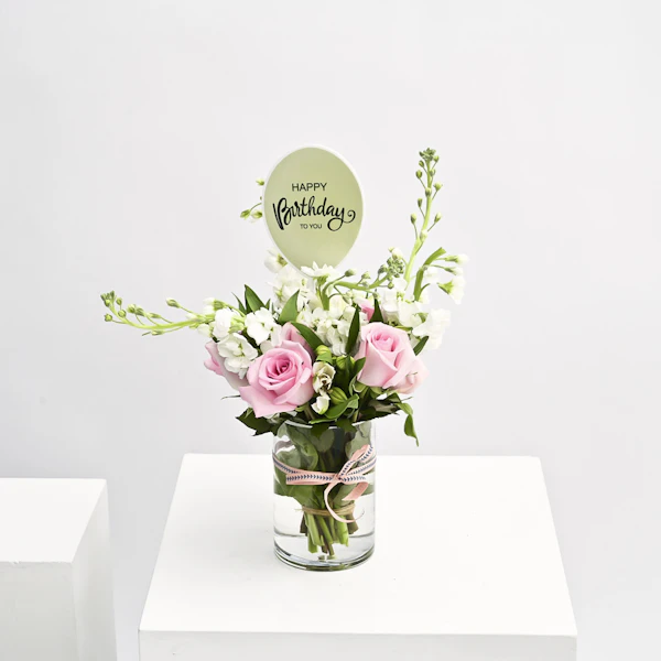 تتميز هذه المزهرية الأنيقة و الرقيقة بمزيج جميل من زهور ماتيولا ووألستروميريا البيضاء و الجورى الوردية. يملأ عطر الماتيولا الرقيق والحلو الهواء ، بينما تضيف الستروميريا لمسة من الأناقة بتلاته الطويلة النحيلة. لتختم مع الجورى الوردية الناعمة بلمستها الأتثوية الناعمة على التنسيق. معًا ، تخلق هذه الأزهار هدية مذهلة مثالية لأي مناسبة ، من أعياد الميلاد إلى الذكرى السنوية . مما يجعله الهدية الأمثل لتعبير عن الحب و الأعتزاز مع تغريسة بالون العيدميلاد.