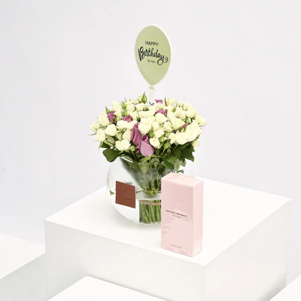 ر.س1210نُسقت هذه الهدية الأنيقة بالتعاون مع فريقنا المبدع بتنسيق الأزهار لتكون الهدية المثالية لاحتفالاتكم بعيد ميلاد احبتكم.
