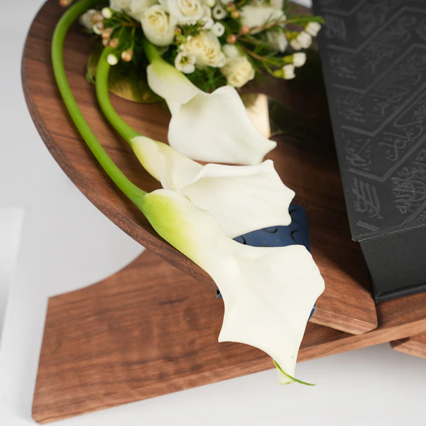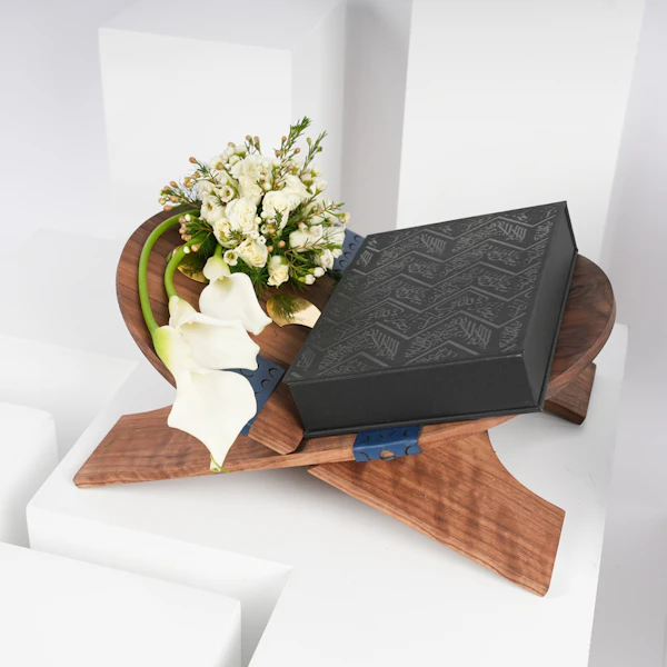 استمتع بتقديم هدية ترتقي بالروح وتغمر القلب بالسكينة والهدوء. المصحف الشريف، رمز الهدى والسلام، يأتيك الآن بحلة مميزة وفريدة. مصمم بأناقة على حامل خشبي يزينه زهور البيبي جوري والكالا البيضاء، ينبض بجمال يعكس قيمة القرآن الكريم. هذه الهدية ليست مجرد هديّة، بل هي تجسيد للقب والروح معًا، تعكس اهتمامك واحترامك لمن تحب. فهي ليست مجرد هدية، بل هي قصة ترويها حروف القرآن وتنعشها عبق الزهور، لتكون الهدية المثالية لكل من يبحث عن السلام والسعادة في قلبه.