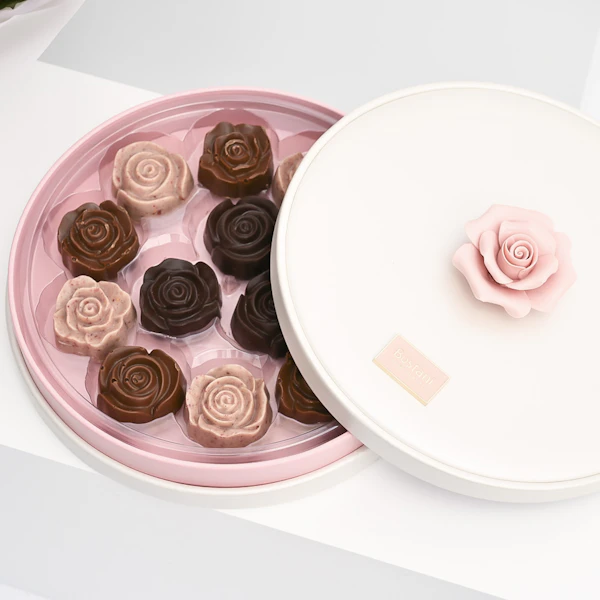 - علبة شوكولاتة الوردة من بستاني والتي تحتوي على 13 قطعة من الشوكولاتة اللذيذة والمتعددة النكهات.