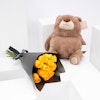 دمية محشوة على شكل دبدوب مع باقة 12 وردة صفراء
