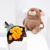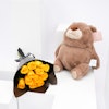 • دمية دبدوب بني صغيرة محشوة بملمس لين وناعم وبتصميم فلاورد.