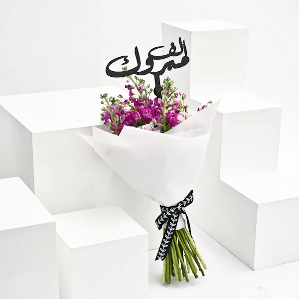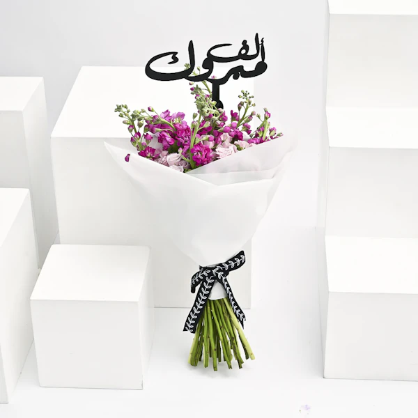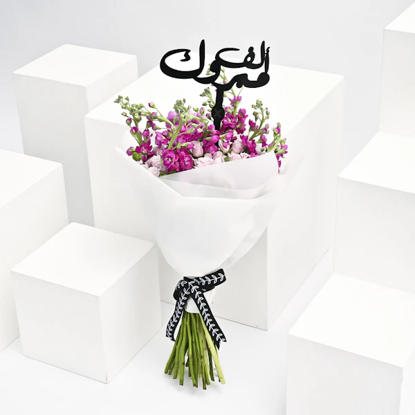 باقة التخرج الماتيولا الفوشيا والبيبي جوري الأرجواني