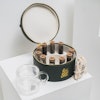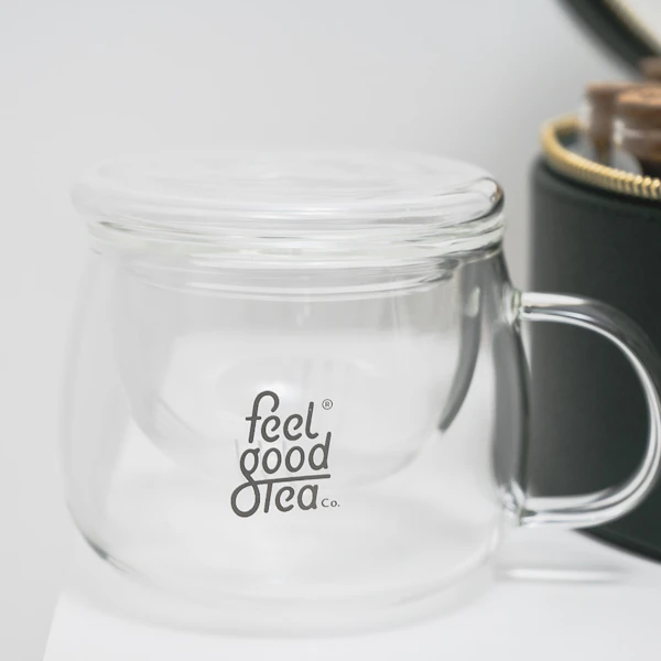 - صندوق الشاي الجلد باللون الأخضر من فيل قود، يحتوي على 10 نكهات شاي بالإضافة الى 15 كيس شاي قابل للتحلل وكوب مونرو الزجاجي مع مصفاة شاي داخلية.