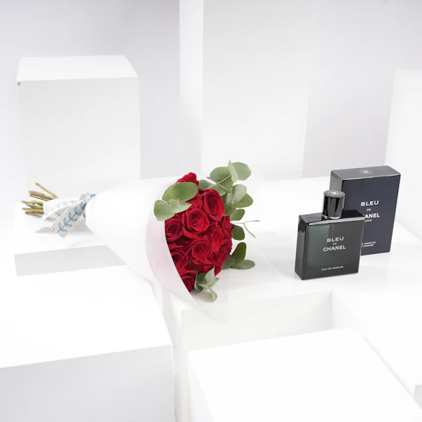 الأسعار شاملة الضرائبعطر شانيل بلو او دو بارفيوم 100مل | 12 وردة جوري حمراء