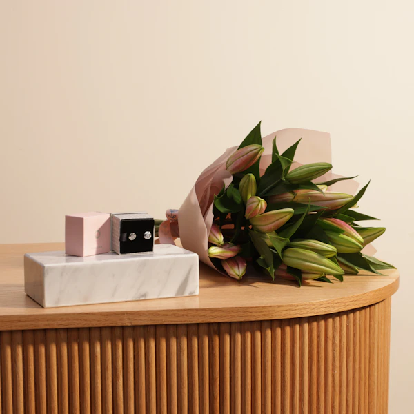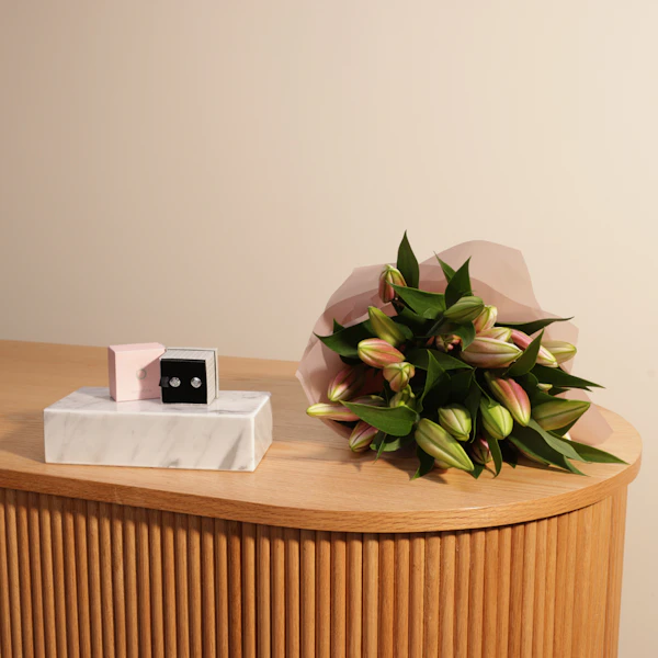اجعل مناسبتك أكثر تميزًا مع مجوهرات فريدة تجمع بين الأناقة والرقي. نقدم لك أقراط فضة من باندورا، المصممة ببراعة لتضفي لمسة من الفخامة على إطلالة من تحب. هذه الأقراط ليست مجرد إكسسوار، بل هي تعبير عن الذوق الرفيع والجمال الخالد. لتعزيز روعة الهدية، تأتي الأقراط مع باقة زهور مختارة بعناية لتناسب الزهور المفضلة لها، مما يضفي لمسة من الجمال الطبيعي والرومانسية على الهدية. سواء كنت تحتفل بمناسبة خاصة أو تبحث عن طريقة مثالية للتعبير عن مشاعرك، اطلب الآن هذه الهدية المميزة ودعها تلمس قلبها بأناقة وفخامة. هذه الهدية تجمع بين جودة المجوهرات ورقة الزهور لتكون الخيار الأمثل لكل مناسبة خاصة، وتبقى ذكرى لا تُنسى.