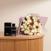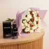 استمتع بجاذبية الذكورة الخالدة مع هذه المجموعة الساحرة التي تتضمن عطر ديور سوفاج إو دي تواليت للرجال، بحجم 100 مل، بالإضافة إلى ترتيب ساحر من الجوري البيضاء والهايبركوم الأحمر المقدمة بأناقة في غلاف وردي. يتسم العطر العبق بالثقة والأناقة، مع مزيج من الروائح الحمضية الطازجة والتوابل الدافئة والروائح الخشبية. مقارنةً مع جمالية الورود الرقيقة والتباين الجريء لتوت الهيبريكم، تجسد هذه الهدية القوة والأناقة، مما يجعلها الخيار المثالي للتعبير عن الإعجاب أو الاحتفال بمناسبة خاصة بأناقة ورقي.