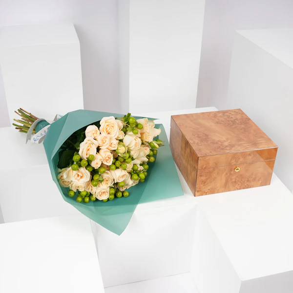جرب الأناقة الخالصة مع صندوق مسك سعد بشمخ الذي يتميز بباقة بيبي جوري برتقالي فاتح ساحرة. رقيق وساحر ، هذه البيبي جوري مرتبة بعناية في صندوق أنيق برائحة المسك ، مما يخلق هدية ساحرة تنضح بالرقي والنعمة. مثالي لأي مناسبة ، سيترك هذا تنسيق الأزهار الساحر انطباعًا دائمًا لدى أحبائك.