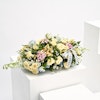• تنسيق أزهار أنيق لطاولة الطعام يتكون من أزهار الاستروماريا الصفراء، أزهار الديلفينيوم الزرقاء، أزهار البوفارديا الوردية، أزهار البابونج البيضاء وورد الجوري الصغير الخوخي.
