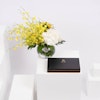 . هدية أنيقة لرجل أنيق. هذا الشماغ الأحمر الرائع من ريتشي هو مثال للجودة والأناقة. وأضافة مزهرية رائعة، مليئة بأزهار الأونسيديوم الصفراء الباهرة، وورود البيبي جوري الصفراء الرقيقة، وزهرة الهيدرانجيا البيضاء النقية المزينة بأوراق الأراليا الخضراء الجميلة يزيد من أناقة وتميز هذه الهدية الفخمة. هذه الهدية أكثر من مجرد لفتة؛ إنها فرصة لجعل لحظاتك الثمينة استثنائية حقًا. قدم هدية تليق بقدرك واترك انطباعًا دائمًا مع هذه المجموعة الاستثنائية.