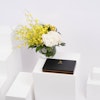 ر.س959. هدية أنيقة لرجل أنيق. هذا الشماغ الأحمر الرائع من ريتشي هو مثال للجودة والأناقة. وأضافة مزهرية رائعة، مليئة بأزهار الأونسيديوم الصفراء الباهرة، وورود البيبي جوري الصفراء الرقيقة، وزهرة الهيدرانجيا البيضاء النقية المزينة بأوراق الأراليا الخضراء الجميلة يزيد من أناقة وتميز هذه الهدية الفخمة. هذه الهدية أكثر من مجرد لفتة؛ إنها فرصة لجعل لحظاتك الثمينة استثنائية حقًا. قدم هدية تليق بقدرك واترك انطباعًا دائمًا مع هذه المجموعة الاستثنائية.