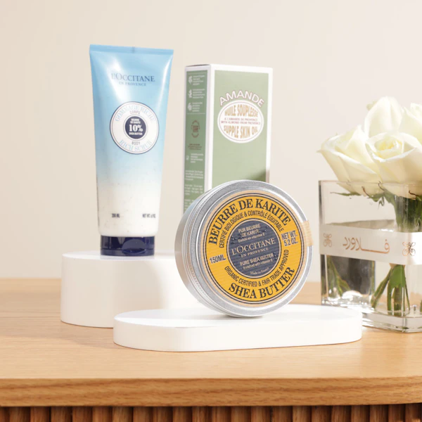 انغمس في تجربة العناية الذاتية الفاخرة مع مجموعة الشيا واللوز الثلاثية من لوكسيتان. تحتوي هذه العلبة المميزة على زيت اللوز للبشرة المرنة (100 مل)، وزبدة الشيا العضوية 100% (150 مل)، ومقشر الجسم الغني بزبدة الشيا (200 مل). مع هذه المجموعة، يمكنك تدليل نفسك أو أحبائك ببشرة ناعمة ومغذية ومتوهجة. تأتي هذه الهدية الرائعة مع مزهرية زهور جوري أبيض، لتضيف لمسة من الجمال والرفاهية إلى تجربتك. اختَر هذا الثلاثي الفاخر لتجعل كل لحظة من العناية الذاتية مميزة، ورفع مستوى روتين العناية بالبشرة الخاص بك.