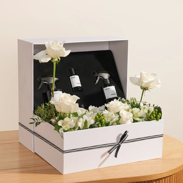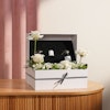 استمتع بتجربة فاخرة مع صندوق مبخر كبير يحتوي على مجموعة متميزة من العطور متعددة الاستخدام. يضم الصندوق كولونيا ويسترن وكولونيا ليذر، بالإضافة إلى أو دي بارفيوم ليذر وأو دي بارفيوم ترابي. تتميز هذه العطور بمكوناتها الغنية والمتنوعة التي تضفي لمسة من الأناقة والجاذبية على يومك. يتميز الصندوق بزينة رائعة من زهور الجوري الأبيض وألستروميريا البيضاء مع لمسات من هيبركوم الأخضر، ليضفي رونقاً خاصاً على هديتك. هذه الهدية المثالية تجمع بين الفخامة والرقي، مما يجعلها خياراً مثالياً للتعبير عن الامتنان والتقدير للأشخاص الأعزاء في حياتك.
