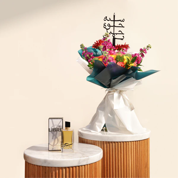 احتفل بيوم ميلاد من تحب بأجمل هدية تعكس أنوثتها وروحها المبهجة! عطر ليبر من إيف سان لوران هو الخيار المثالي لكل امرأة تبحث عن لمسة من الفخامة والجاذبية، حيث يجمع بين النفحات الدافئة والمكونات الراقية، ليمنحها شعوراً ساحراً يدوم طويلاً. ولتجعل الهدية أكثر خصوصية وتميزًا أضف إلى هذا العطر الرائع باقة من زهورها المفضلة، مما يضفي لمسة من الرومانسية والبهجة على هذه المناسبة الخاصة. ولا تنسي إضافة عود تزيين رائع مكتوب عليه "سنة حلوة يا جميل"، لتكون هذه الهدية مزيجًا مثاليًا من الحب والاهتمام. اطلب الآن واجعل يوم ميلادها ذكرى لا تُنسى بكل هذه التفاصيل المميزة!