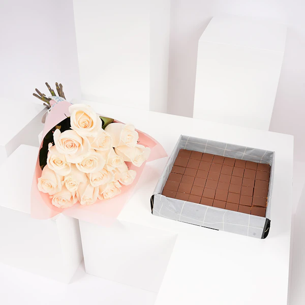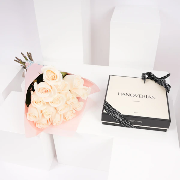 علبة شوكولاتة هنوفيرين بالكراميل عبارة عن مجموعه هدايا مبهجة تجمع بين الجاذبية الحلوة لشوكولاتة الكراميل مع الجمال النقي للجوري البيضاء. ستجد داخل هذا الصندوق الأنيق مجموعة مختارة من شوكولاتة الكراميل الرائعة المصنوعة من قبل شركة هانوفر المشهورة بحلوياتها الفاخرة. وتقترن هذه الهدايا اللذيذة بباقة ساحرة من الجوري البيضاء، التي ترمز إلى النقاء والبراءة. تعتبر هذه الهدية خيارًا مثاليًا لمختلف المناسبات، حيث تقدم مزيجًا من الشوكولاتة الغنية بالكريمة مع أناقة الجوري البيضاء الخالدة، مما يجعلها لفتة ساحرة ومدروسة حقًا.