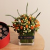 SKU FC04931هذه الهدية الرائعة تجمع بين تشكيلة متنوعة من الشوكولاتة الفاخرة وبين جمال الزهور الطبيعية، لتقديم تجربة مذهلة تفيض باللذة والجمال. يتضمن صندوق شوكولاتة هانوفريان مجموعة متنوعة من النكهات الرائعة مثل التوت، الكراميل، الفستق، والبندق، مما يضفي تنوعًا وفخامة على هذه التجربة. أما الزهور، فتتكون المزهرية من زهور فيرونيكا البيضاء، ورود البيبي جوري البرتقالية، وزهرة الهيبركوم البيضاء، والتي تضيف بريقًا وجمالًا طبيعيًا إلى الهدية، مما يجعلها تجسد الجمال والفخامة في كل التفاصيل.