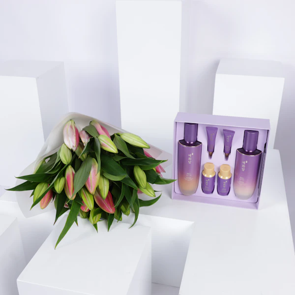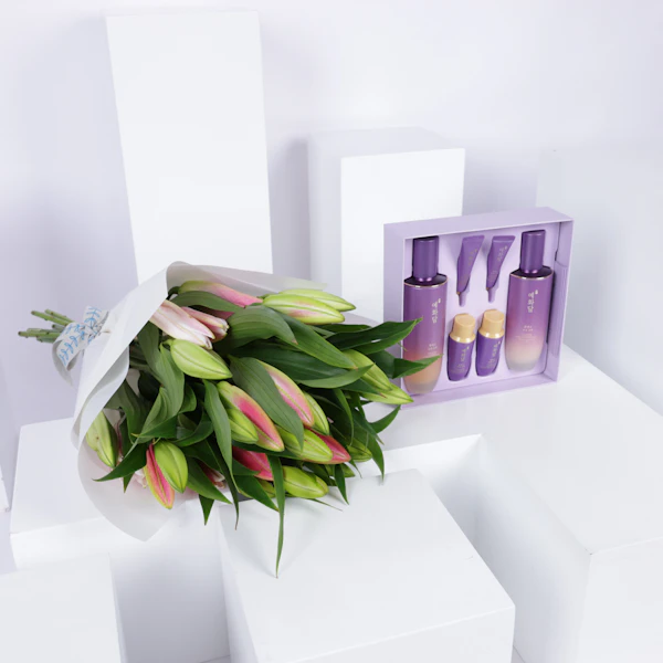 قدم هديتك المثالية للعناية بالبشرة مع مجموعة يهوادام الخاصة من ذا فيس شوب للنساء. تقدم هذه المجموعة الفاخرة روتينًا شاملاً للعناية بالبشرة، مما يوفر التغذية والتجديد لبشرة مشرقة وشابة. تأتي الهدية برفقة باقة من الليليوم الوردية والبيضاء، ما يضفي لها لمسة من الأناقة والفخامة. ترمز الليليوم الوردية إلى الإعجاب والامتنان، بينما تمثل الليليوم البيضاء النقاء والبراءة. معًا، يخلقون مزيجًا متناغمًا من الجمال والنعومة، يقدم تعبيرًا مخلصًا عن التقدير والمحبة. هذه المجموعة الساحرة هي احتفال بالأنوثة والعناية بالنفس، مما يضمن تجربة تدليل ترتقي بالجسد والروح.