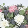 ر.س445تنسيق مزهرية ابيض و زهري اللون من زهور القرنفل و ارنجيوم ازرق اللون مع بطاقة لبرج الجدي