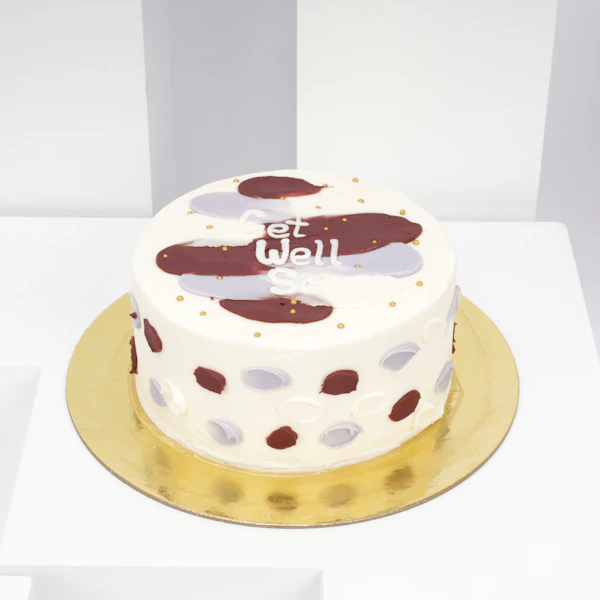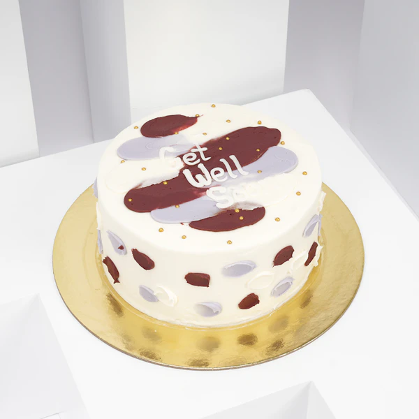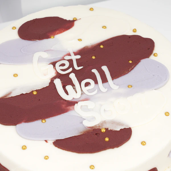 - التصميم: كيك مزين برسالة تمنيات الشفاء العاجل باللغة الإنجليزية