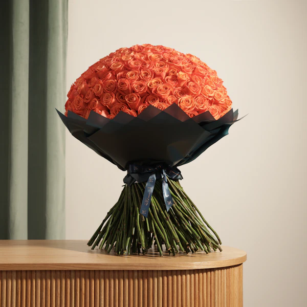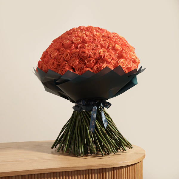 الأسعار شاملة الضرائبباقة جوري برتقالي مشرقة | 250 زهرة