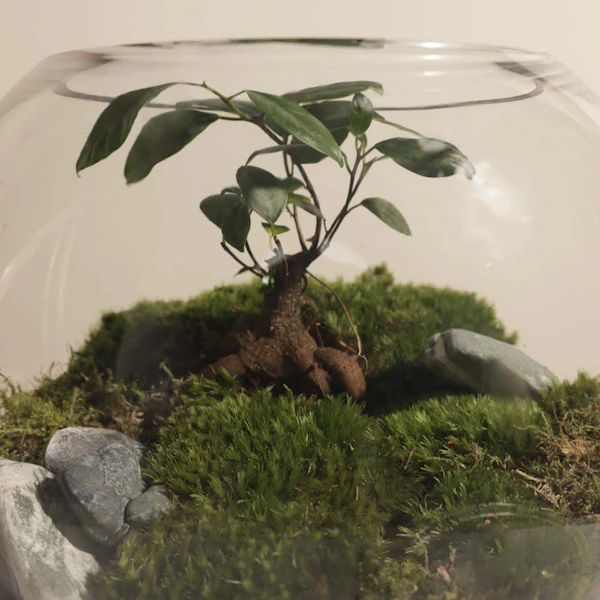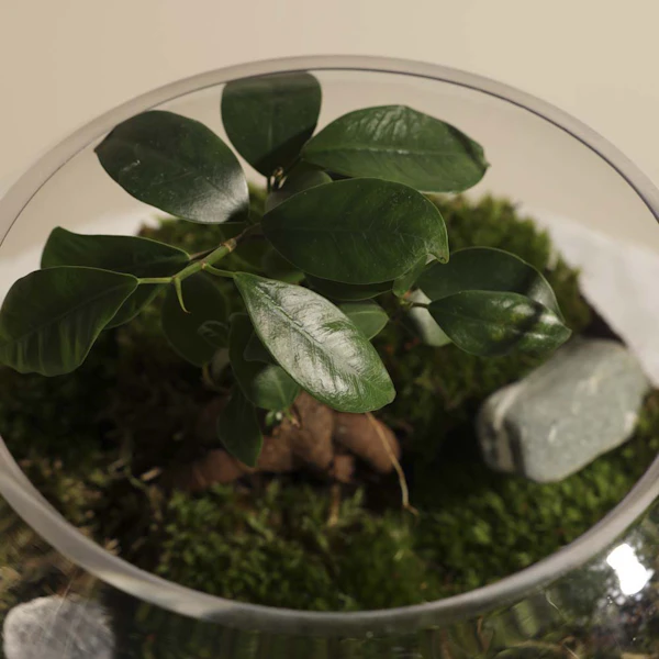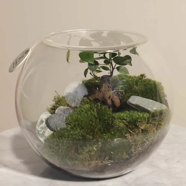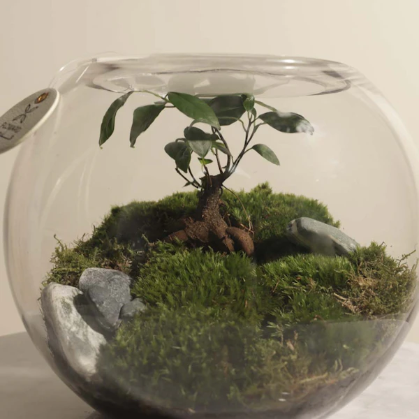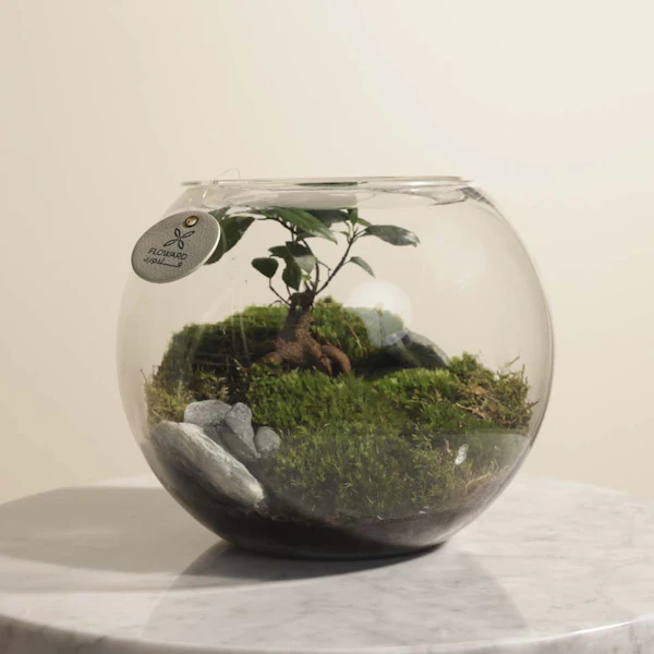 أضف لمسة من الأناقة والطبيعة إلى منزلك مع نبات التيراريوم في مزهرية زجاجية دائرية. يتميز هذا التيراريوم الرائع بتصميمه الفريد الذي يتضمن شجرة البونساي القزمي، والطحالب الخضراء الفلات موس، والبول موس، والحر الطبيعي للزينة. كل عنصر من هذه العناصر ينسجم ليشكل قطعة ديكور طبيعية وساحرة، مثالية لأي مكان في المنزل. يعزز هذا التيراريوم جمال المساحات الداخلية ويضفي لمسة من الحيوية. لا تفوت فرصة الحصول على هذه التحفة الفنية، واطلب الآن لتحصل على هذا التيراريوم المميز الذي سيجعل من منزلك ملاذًا للجمال الطبيعي.