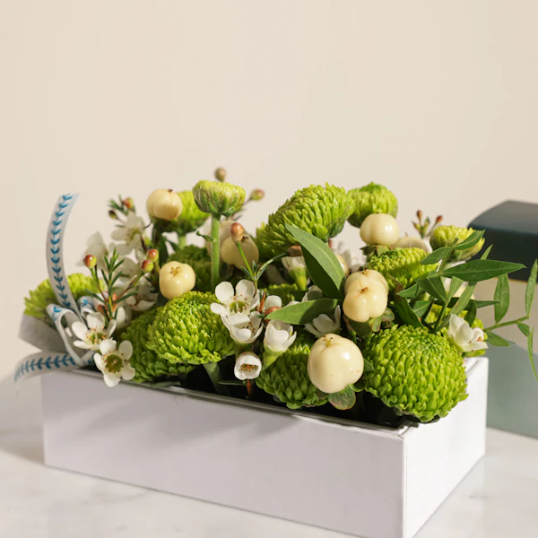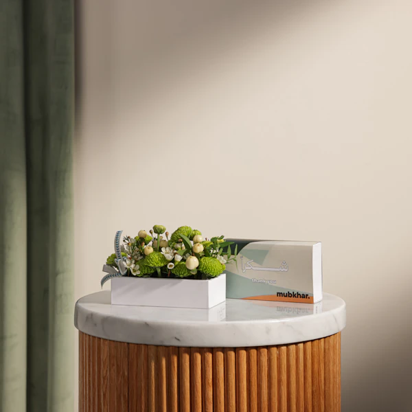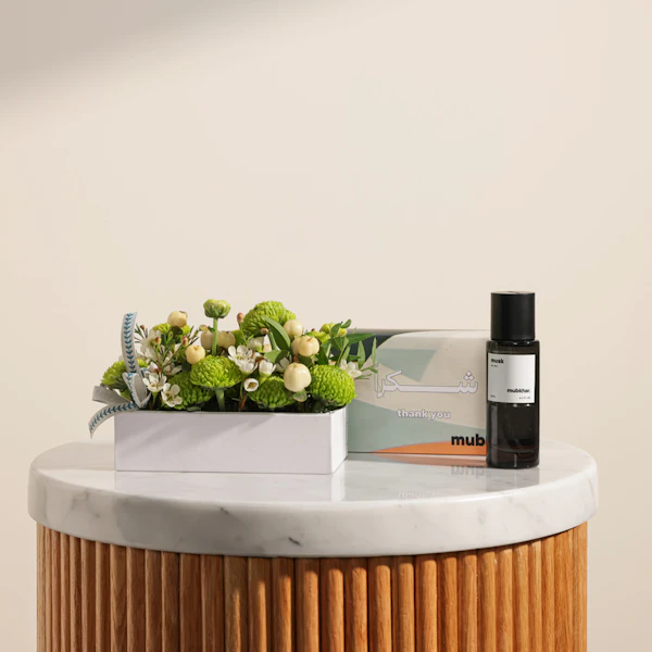 قدّم شكرًا بأناقة مع مسك عطر الشعر من مبخر، مغلف برسالة شكرًا مميزة، بسعة 30 مل. هذا العطر الفاخر يضفي لمسة ساحرة على كل خصلات الشعر، ليترك رائحة مميزة تدوم طويلاً. مع ترتيب الزهور الرائع من الأقحوان الأخضر والهيبركوم الأبيض، ستضيف لمسة من الجمال والرقي إلى هديتك. يُقدّم كل ذلك في صندوق أنيق، ليكون خيارك المثالي للتعبير عن تقديرك بأسلوب مبتكر ومميز. اجعل كل لحظة شكر لا تُنسى مع هذه الهدية التي تجمع بين العطر الفاخر والترتيب الزهري الجذاب.