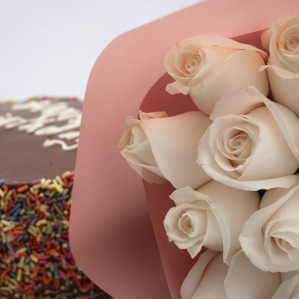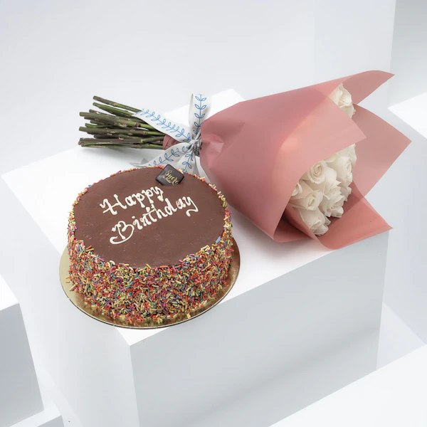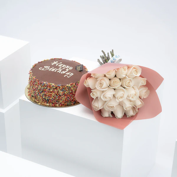الأسعار شاملة الضرائبكيك يوم ميلاد سعيد من سكر الندى | باقة جوري
