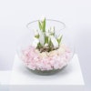 ستحمل هذه المزهرية الأنيقة مشاعر الوِّد والمحبة لأحبتك، فهي تتميز بالتناغم بين زهورها المكونة من اليهدرنجيا الوردية و التوليب والجوري الأبيض رائعة الجمال. فالزهور تم تنسيقها داخل المزهرية الزجاجية بنعومة وأنسيابية لا متناهية تزيد الورود سحراً وجاذبية. هذه المزهرية الجميلة ستكون أضافة رائعة لأي غرفة لما تشعه من جمال والأناقة، مما يجعلها من ألطف ما يمكن ان تقدمه إلى من تحب.