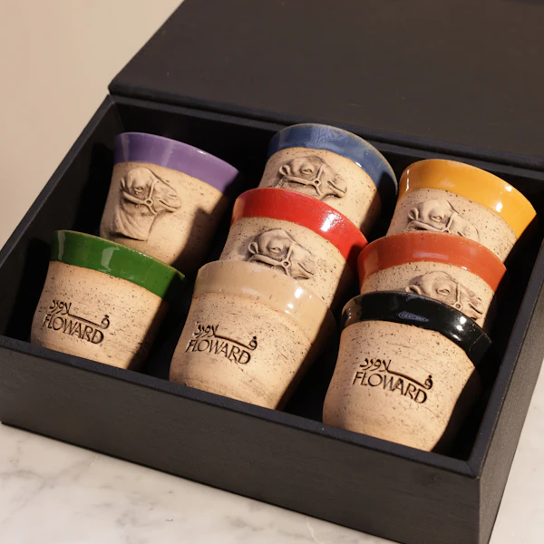اختر الهدية المثالية التي تعبر عن التراث السعودي الأصيل مع ستة فناجين سيراميك فاخرة من فلاورد. يتميز هذا الطقم بتصميم الأبل، الذي يجسد رمز الصحراء والبادية، مما يضفي لمسة من الأصالة والجمال إلى كل فنجان. تتميز الفناجين بتفاصيل دقيقة تعكس التراث السعودي بكل فخر. تأتي الفناجين في صندوق جلد أسود أنيق، مما يجعلها هدية مميزة وأنيقة يمكن تقديمها للأحبة في أي مناسبة خاصة. هذا الطقم ليس مجرد فناجين، بل هو تجسيد للفخامة والتميز، ويعكس شغفك بالثقافة والتراث. اطلب أحلى هدية الآن واستمتع بمزيج من الفخامة والتراث السعودي الذي سيبهر كل من يراه. إنها الخيار الأمثل لمن يريد إضافة لمسة شخصية ورائعة إلى لحظاتهم الخاصة، مع تقديم هدية تحمل بين طياتها روح الأصالة والجمال السعودي.