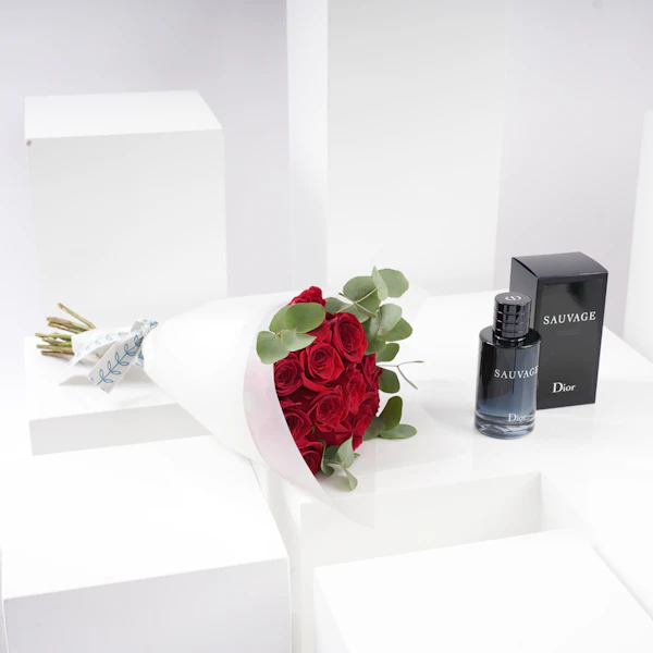 أشعل نيران العاطفة في يوم الحب بهدية تجسد جوهر الرجولة الخام والرومانسية الخالدة. نقدم لكم عطر ديور سوفاج للرجال، وهو عطر يجسد القوة والجاذبية وروح المغامرة الجامحة، مقترنًا بباقة عطر الرومانسية الرائعة من الجوري  الحمراء. ديور سوفاج للرجال هو عطر مصمم للرجل العصري الذي ينضح بالثقة والكاريزما. بفضل روائحه المنعشة والحارة، يثير هذا العطر إحساسًا بالرقي القوي، ويترك انطباعًا دائمًا أينما ذهب. من أول رشة إلى الأثر الأخير، يشعل سوفاج من ديور الحواس ويترك جاذبية آسرة من المستحيل مقاومتها. تكتمل جرأة سوفاج من ديور بباقة عطر الرومانسية، وهي مجموعة مذهلة من الجوري  الحمراء العميقة التي ترمز إلى الحب والعاطفة والرغبة. تهمس كل بتلة الي المودة، بينما تملأ الرائحة الجذابه الهواء بإحساس من الرومانسية والشوق.