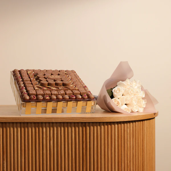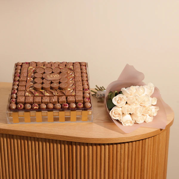 اكتشف تجربة فاخرة مع صينية الشوكولاتة المربعة من ليفو، التي تزن 2 كجم من أفخر أنواع الشوكولاتة التي تأسر الحواس. تأتي هذه الصينية الفريدة بتصميم أنيق ومميز، مما يجعلها الهدية المثالية لأي مناسبة. تتميز الشوكولاتة بنكهتها الغنية وجودتها العالية، حيث يتم تحضيرها بأفضل المكونات لتقديم تجربة تذوق لا تُنسى. لإضفاء لمسة من الجمال والرقي، تأتي صينية الشوكولاتة المربعة مع باقة من الزهور المختارة بعناية، مما يجعلها تنسجم تمامًا مع رونق الشوكولاتة وتضفي عليها لمسة من الأناقة والجاذبية. هذه الباقة الزهرية تضيف أجواءً من البهجة والاحتفال، مما يجعل الهدية أكثر تميزًا.
