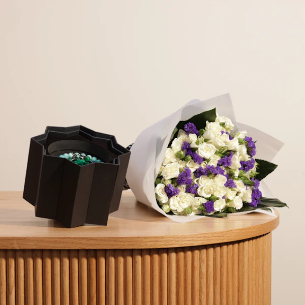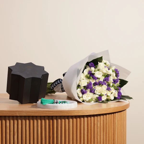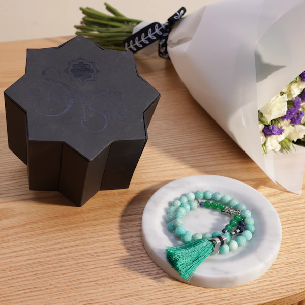 أضف لمسة من الأناقة والروحانية مع مسبحة تسنيم عشقي الفاخرة، التي تتناغم تمامًا مع باقة زهور بألوانك المفضلة. تجمع هذه الهدية بين الجمال العاطفي والروحاني، لتُضفي لمسة فريدة على مناسبتك. مثالية للتعبير عن الذوق الرفيع والمشاعر الصادقة، مما يجعلها الخيار المثالي لكل لحظة خاصة.