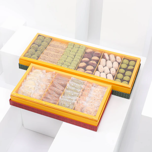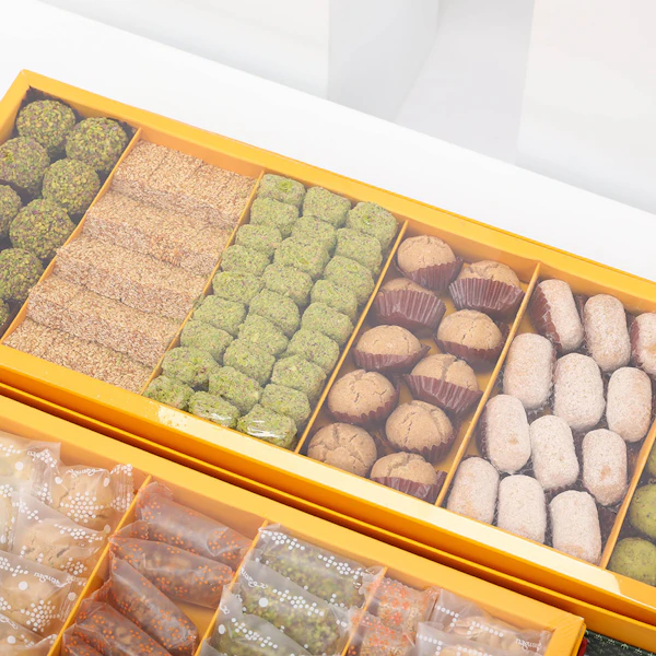 باقة تحتوي على سيمبيديوم وبيبي اوركيد مع بوكسات نقوة