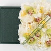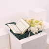 استمتع بلحظات من السكينة والتأمل مع صندوق قرآن أخضر من فلاورد، يزينه تناغم زهور الهيدرانجيا البيضاء والأوركيد السيمبيديوم الأخضر والأوركيد الأونسيديوم الأصفر. هدية تذكرنا بأهمية قراءة القرآن في حياتنا، فهو شاهدٌ على تقربنا إلى الله وعلى السلام الداخلي الذي يمنحه لقلوبنا. اجعل قراءته لحظات ملؤها السكينة والإيمان، واجعل هذه الهدية بوابةً للنفحات الروحانية في حياتك.