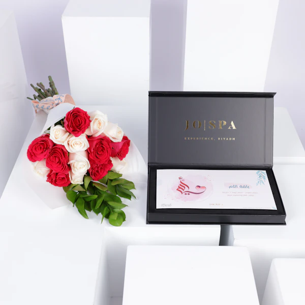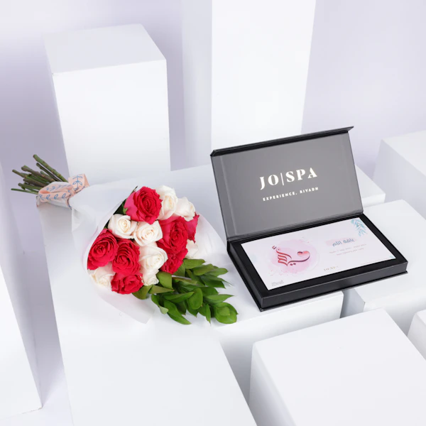 امنح والدتك فرصة الهروب إلى عالم من الرفاهية مع قسيمة اهداء من جو سبا. تتضمن هذه التجربة الممتعة حمامًا مغربيًا مجددًا للنشاط، وعلاجًا فخمًا للشعر، وتجفيفًا احترافيًا، مما يضمن شعورها بالدلال من الرأس إلى القدمين. ووسط العلاجات الفاخرة، تضيف باقة مذهلة من الجوري الأبيض والجوري الفوشيا لمسة إضافية من الأناقة والجمال. اسمح لها بالاسترخاء والراحة واستعادة نشاطها في أجواء السبا الهادئة، المحاطة بالزهور العطرية، مما يخلق ذكريات عزيزة ستعتز بها إلى الأبد. امنح هدية الاسترخاء وتجديد النشاط مع قسيمة جو سبا الرائعة.