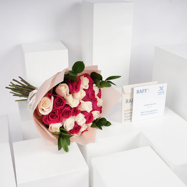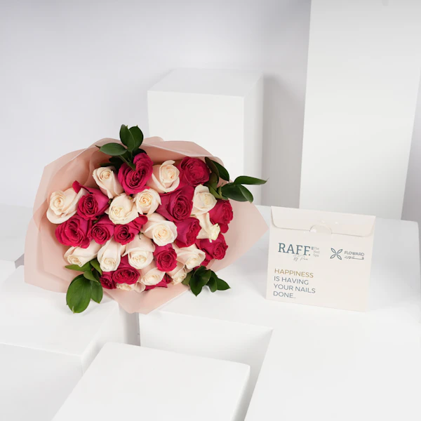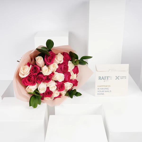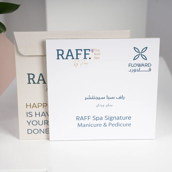 اجعل هديتك مميزة ومحببة باختيار بطاقة هدية من راف باي باريس سبا، تقدم لأحبائك جلسة مناكير وباديكيرساحرة ، ومعها باقة من الجورى الفوشيا و الأبيض،مغلفة بغلاف كريمى اللون الراقى. اجعل تجربة الاسترخاء أكثر روعة وجمالًا مع هذه الهدية الراقية.