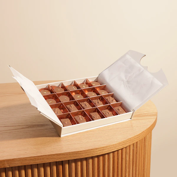 استمتع بأفخر أنواع الشوكولاتة مع صندوق شوكولاتة صغير من فلاورد، الذي يجمع بين نكهة الكرانشي المقرمشة والكراميل الغني. هذا الصندوق يحتوي على قطع من الشوكولاتة الفاخرة، المصممة بدقة لتكون الهدية المثالية لشخص مميز أو لتستمتع بها في لحظاتك الخاصة. كل قطعة تقدم تجربة مميزة من النكهات التي تجمع بين الحلاوة والقوام المقرمش، مما يجعلها الخيار الأمثل لمن يبحث عن لمسة فاخرة في كل قطعة. سواء كنت ترغب في إهداء شخص عزيز أو تدليل نفسك، هذه الشوكولاتة ستجعل كل اللحظات أكثر تميزًا. لا تتردد، اطلب الآن واستمتع بمذاق الشوكولاتة الفاخرة!