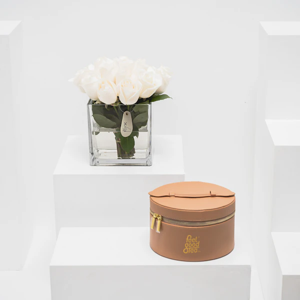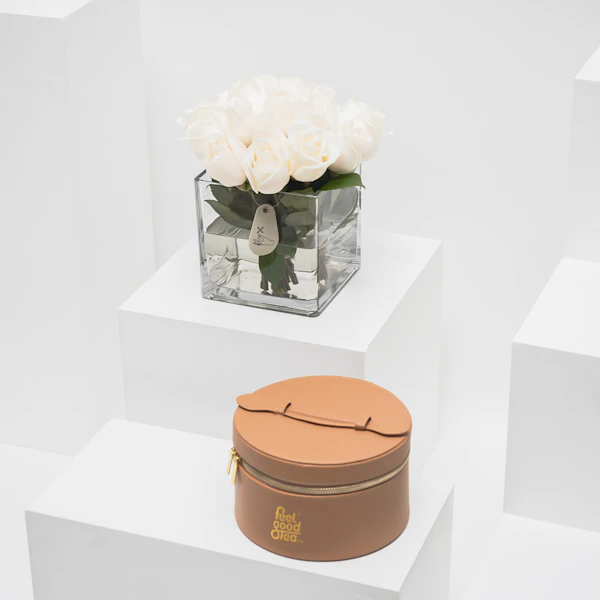 صندوق الشاي الجلد من فيل جود تي | 20 وردة جوري أبيض