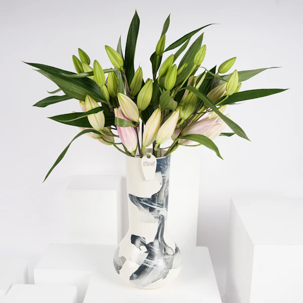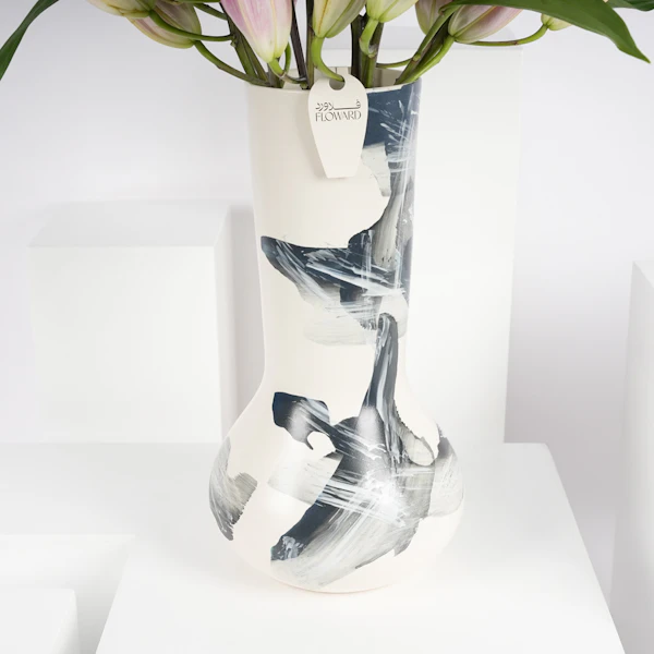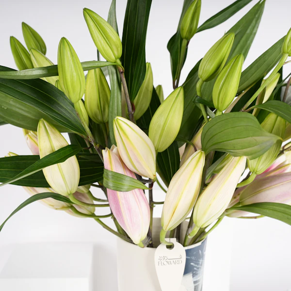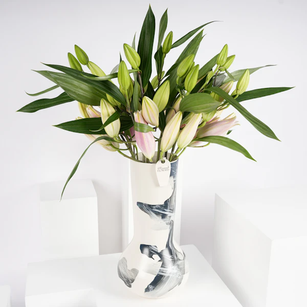 قدم هدية مذهلة من الأناقة والرقة مع مزهرية سيراميك مزينة بالليليوم الوردية. كل زهرة رقيقة تجسّد الإعجاب والمودة، مما يجعلها تعبيرًا مثاليًا عن الحب والتقدير. اللون الوردي الناعم لاليليوم ينضح بالدفء والحنان، ويضيف لمسة من الجمال إلى أي مساحة. يعد هذا الترتيب الخالد بمثابة رمز للنقاء والإخلاص، مما يجعله هدية مثالية للاحتفال بالمناسبات الخاصة أو ببساطة لنقل المشاعر القلبية. دع جمال وعطر الليليوم الوردية يضيء يوم شخص ما ويذكره بالرابطة العزيزة التي تشاركها.
