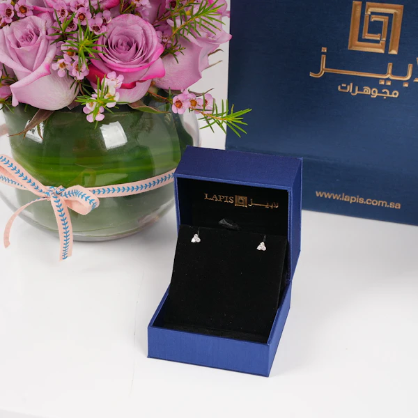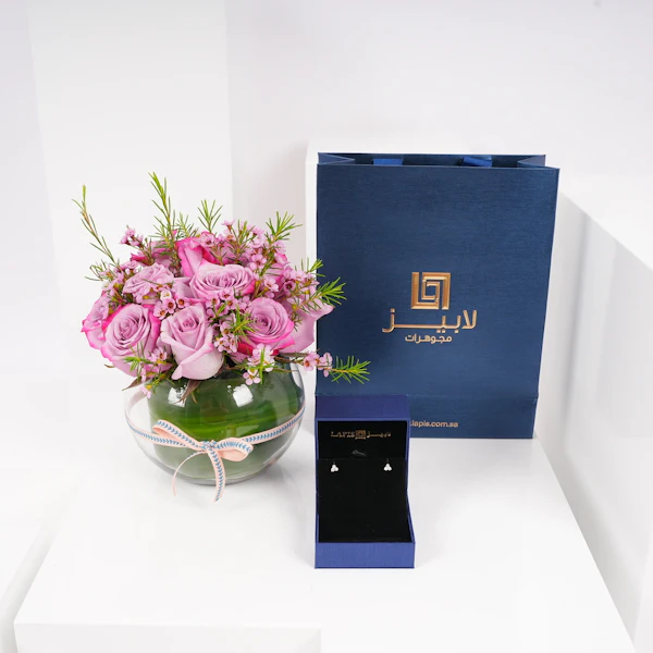 ر.س3565يعتبر حلق الماس من لابيز، المصنوع من الذهب الأبيض اللامع عيار 18 ، تحفة من الأناقة والفخامة. ينضح هذا الملحق بالرقي الخالد. مع الجوري البنفسجي الغنية، يشكل مزيجًا مذهلاً يعرض الفخامة والجمال الطبيعي. تضيف زهرة الشمع البنفسجي عمقًا إلى الترتيب من خلال أزهارها العطرة المعقدة. يتم عرض هذه الزهور الـ 15 الرائعة بشكل فني في مزهرية دائرية زجاج رقيق، مما يخلق مزيجًا آسرًا ومتناغمًا من المجوهرات والأزهار مما يجعلها هدية رائعة لا تُنسى.