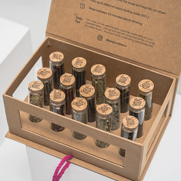 • صندوق الاكتشاف الاوريجنال من فيل جود تي، يحتوي على 15 أنبوب شاي يكفي حتى 30 كوب.