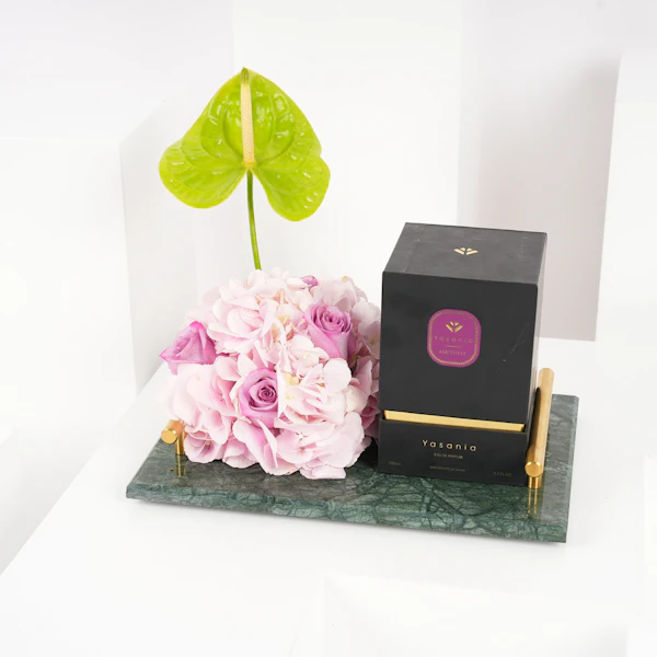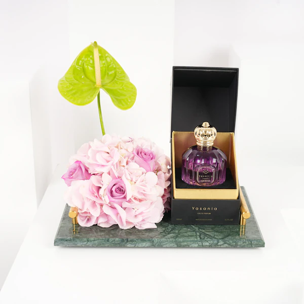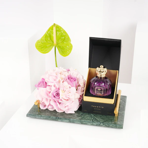 عش تجربة سحرية مع عطر أميثيست من ياسانيا، عطر بحجم 100 مل مناسب للجنسين يتجاوز العطور العادية. يتمم هذا العطر الرفيع معرضًا لجمال الطبيعة - مجموعة من الأنثوريوم الأخضر الزاهي، والجورى البنفسجى ، وزهرة الهايدرانجيا الوردية المرتبة بشكل فني على صينية رخام خضراء فاخرة. اكتشف جوهر الأناقة بينما يمتزج العطر مع السيمفونية الزهرية. ياسانيا أميثيست هو أكثر من عطر؛ إنه احتفال برائحة العطور وفن النباتات، يدعوك لاحتضان الاستثنائي.