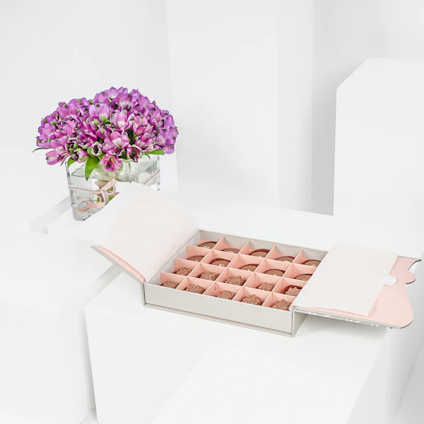 الأسعار شاملة الضرائبصندوق الشوكولاتة الصغير من فلاورد | مزهرية ألستروميريا