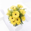 مُبتكرة من قبل فريقنا المختص بتنسيق الازهار، تم اختيار هذه الفازة الناعمة لتكون اضافة مبهجة لأي مساحة شخصية، او كهدية انيقة لجميع احتفالاتكم السعيدة.هذه الباقة الجميلة غنية باللون الاصفر المنعش حيث تتكون من عشرين زهرة من زهور الجربارة الصفراء بالاضافة الى ثمانية ازهار من زهرة السوليداقو الصفراء ايضاً.نعمل لجعل لحظاتكم الفريدة اكثر تميزاً. يعد مزيج جرباره صفراء و سولدياجو اصفر رمزًا للسعادة والصداقة، مما يجعل هذا الترتيب خيارًا مثاليًا لنقل أمنياتك الطيبة أو لإضفاء البهجة على يوم شخص ما بمجموعة من الألوان النابضة بالحياة.