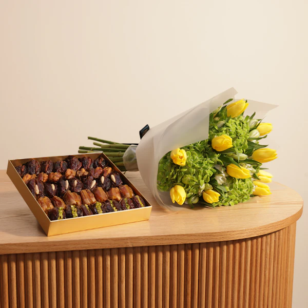 اجعل مناسباتك لا تُنسى مع علبة شوكولاتة شهية من باتيل التي تجمع بين أفخر النكهات وأعلى مستويات الجودة. لتعزيز هذه التجربة الفاخرة، أضف باقة زهور ساحرة تضفي جمالاً وأناقة على أي مكان. هذه الهدية المثالية تجمع بين الطعم اللذيذ والمنظر الخلاب، مما يجعلها الخيار الأمثل لإسعاد أحبائك. لا تنتظر، فاجئهم الآن بهذه الهدية المميزة التي تعبر عن أعمق مشاعرك.