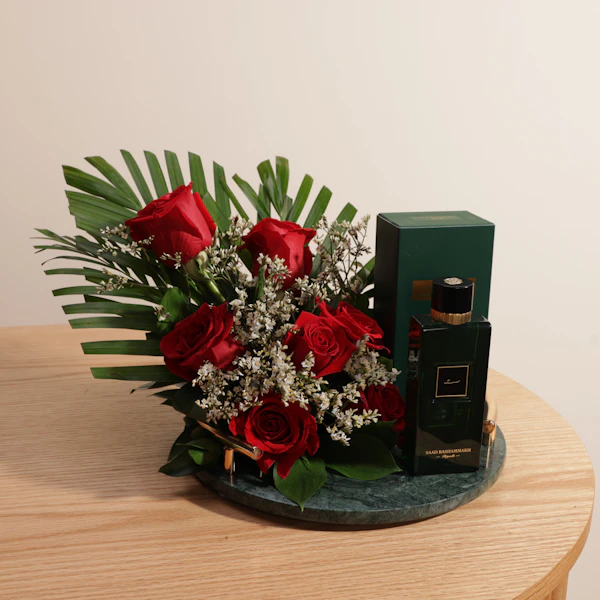 ر.س1275احتفل بأناقة وفخامة مع هذه الهدية الراقية التي تجمع بين عبير العطر وجمال الزهور. تتضمن الهدية عطر المسك الفاخر من سعد باشماخ للجنسين، الذي يتميز برائحته العطرة والمميزة، ليكون هدية مثالية لأي مناسبة. يأتي هذا العطر الفريد مع باقة من زهور الجوري الأحمر الساحرة، التي تضيف لمسة من الرومانسية والجمال. تُقدَّم هذه الهدية على صينية رخام مربعة خضراء، مما يعزز من فخامتها ويجعلها هدية لا تُنسى. هذه الهدية تعبر عن ذوقك الرفيع وتقديرك للشخص المميز في حياتك، وتجعل كل لحظة احتفال ذكرى جميلة ومميزة، تعبّر عن الفخامة والأناقة بأروع الطرق.