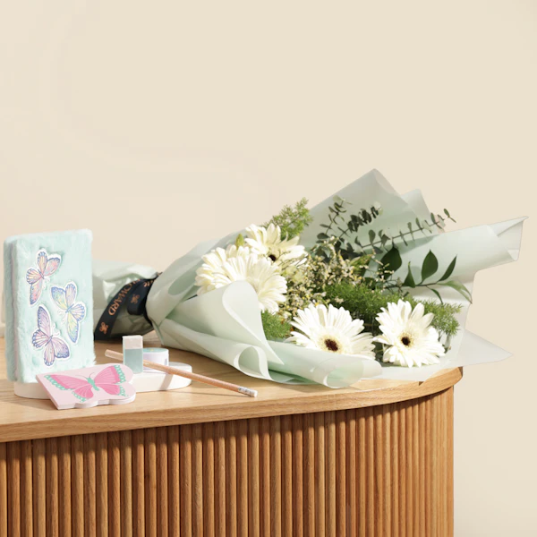 الأسعار شاملة الضرائبمجموعة هدايا طقم قرطاسية من جرير | باقة زهور أنيقة